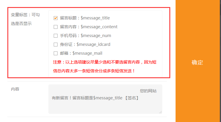 1、后台----短信模板中,增加了【留言内容】模板,开启此模板